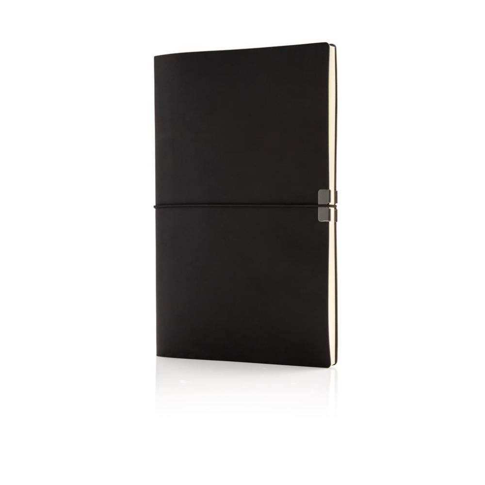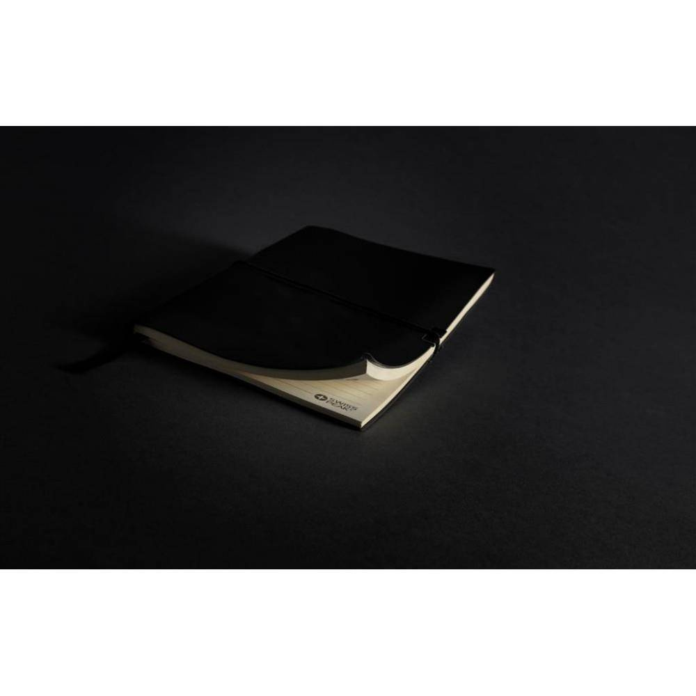 Notatnik A5 (80 kremowych kartek 78 g/m2 w linie), miękka i elastyczna okładka, horyzontalna opaska do zamykania, tasiemka zakładkowa, strony oraz tylna część okładki z logo Swiss Peak