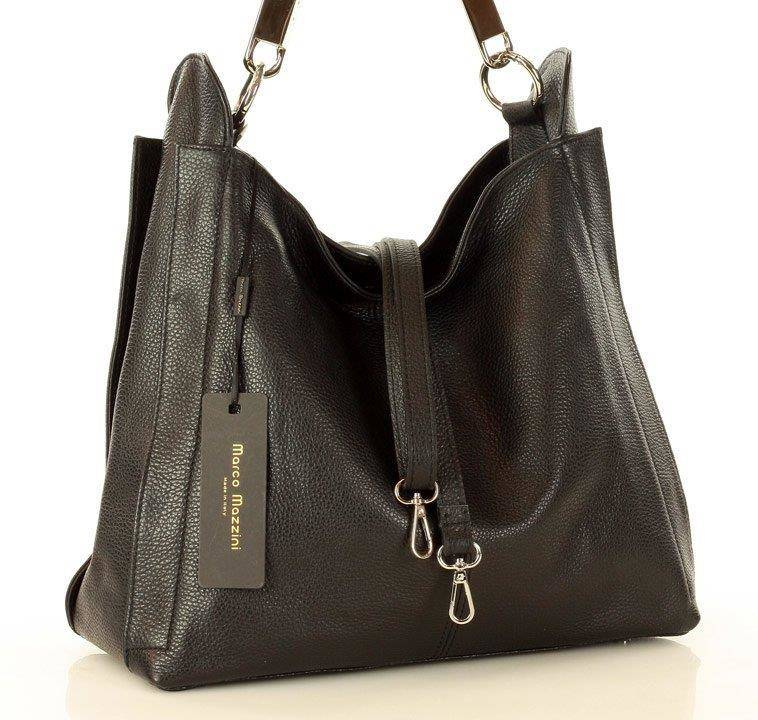 MARCO MAZZINI Miejska torebka skórzana vera pelle classico czarna - min. zamówienie 20 / 50 / 100 szt.