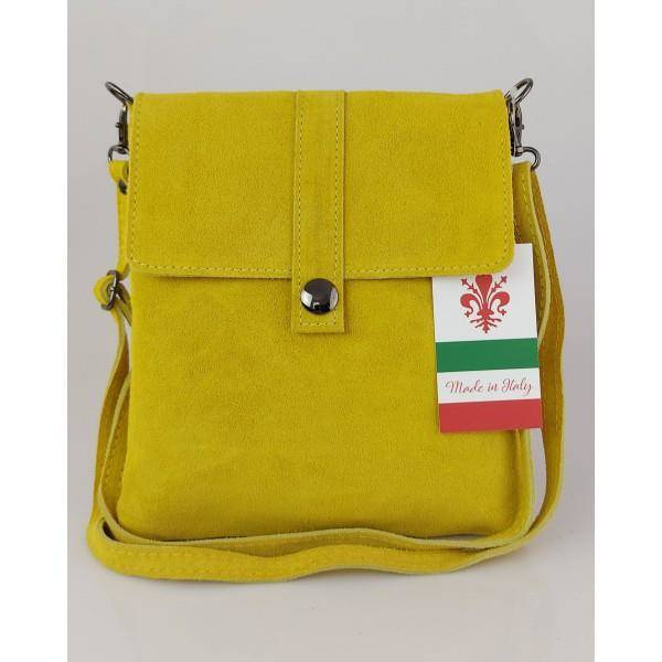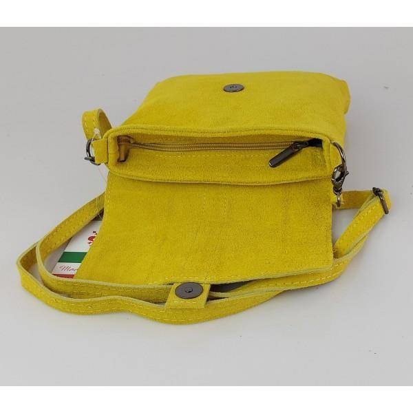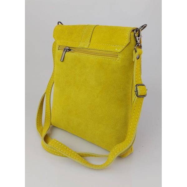 Zamszowa listonoszka Vera Pelle ,pojemna przewieszka format A5 Żółta LK44GIA