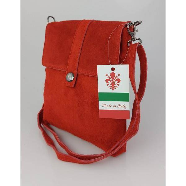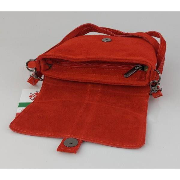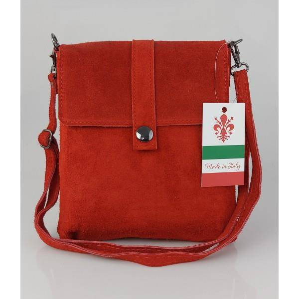 Zamszowa listonoszka Vera Pelle ,pojemna przewieszka format A5 Czerwona LK44R