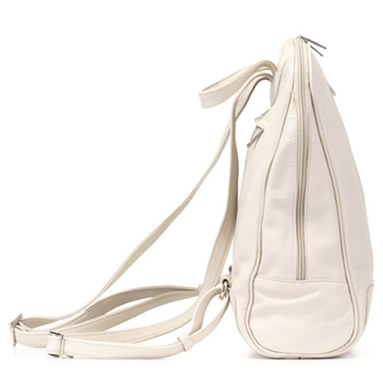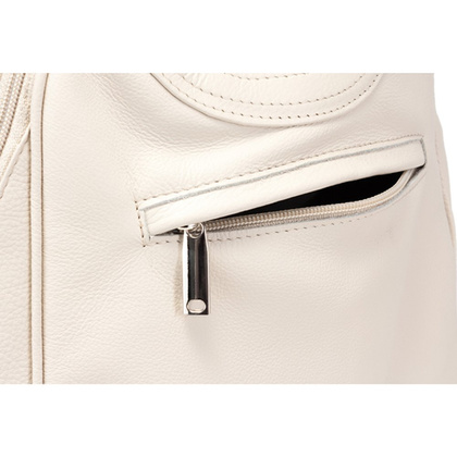 Plecak damski Cream Cat uszyty z wysokiej jakości naturalnej skóry licowej. Elegancki i kobiecy utrzymany w stylu klasycznym. Szeroko poprowadzony zamek błyskawiczny ułatwia dostęp do wnętrza plecaka, gdzie znajduje się dodatkowa kieszonka na smartfon oraz kieszeń zapinana na zamek błyskawiczny. Z tyłu plecaka dodatkowa kieszonka zapinana na zamek. Wygodne, regulowane szelki i uchwyt do noszenia plecaka w dłoni.