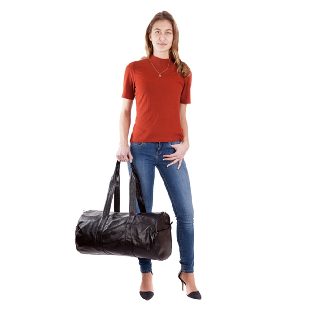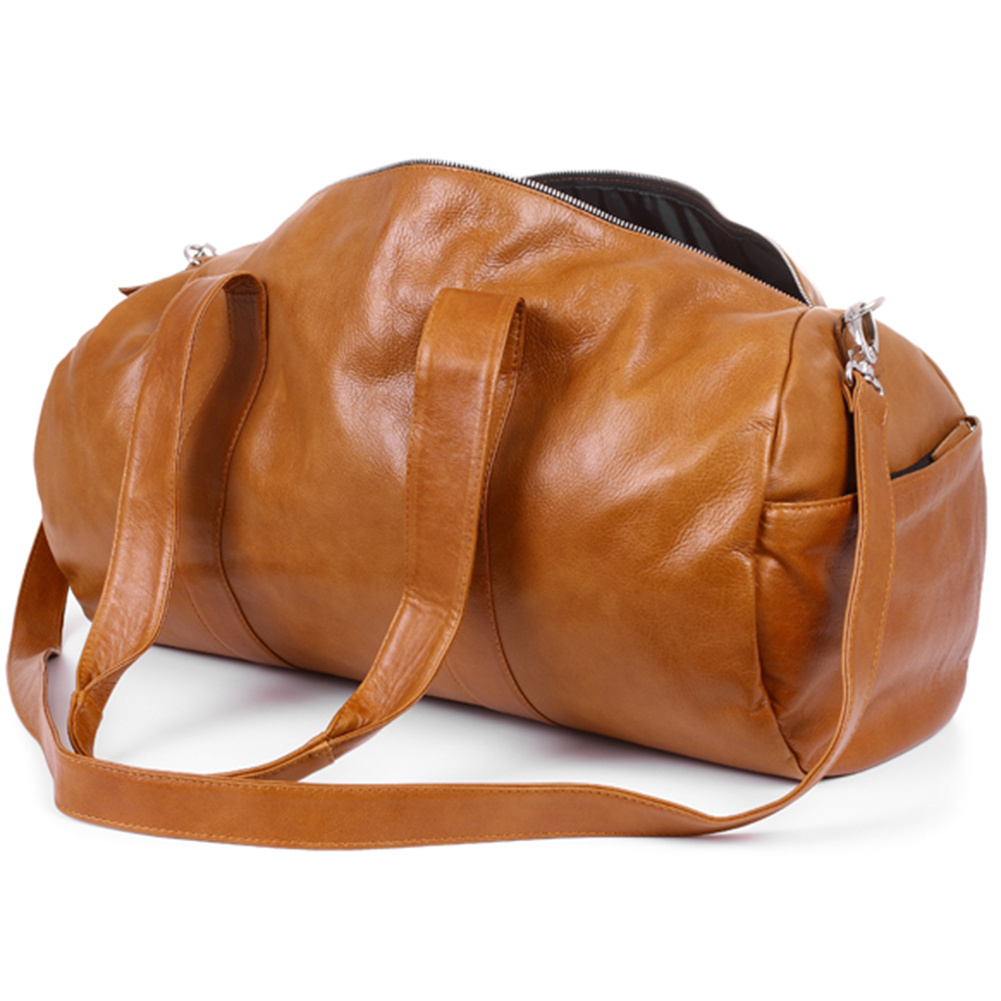 VOOC Prestige EP14 to duża torba podróżna w kształcie walca wykonana w całości z naturalnej skóry włoskiej. Idealna na weekendowy wypad lub wyjście do klubu fitness. Dzięki dużym rozmiarom bez problemu posłuży jako bagaż podręczny. Posiada dwie zamykane kieszenie po bokach na podręczne drobiazgi.