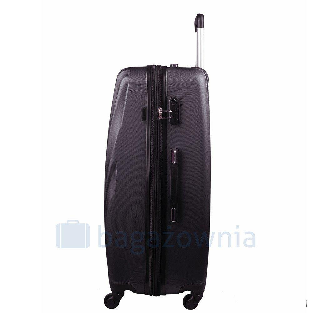 Luksusowa walizka, stworzona z myślą dla najbardziej wymagających klientów. Nowoczesny, lekki model wykonany z bardzo wytrzymałego i odpornego na zarysowanie tworzywa ABS Plus, z dwupoziomową teleskopową rączką. Zewnętrzne, przyjemne w dotyku gumowe uchwyty oraz zamek szyfrowy uniemożliwiający dostanie się do wnętrza osobom niepożądanym. Trwały, duraluminiowy stelaż wbudowany w walizkę. Wyposażony w cztery obrotowe kauczukowe kółka, które zapewniają stabilność oraz lekkość prowadzenia w dowolnym kierunku. Wnętrze w ciemnym sygnowanym kolorze dzielone zamkiem błyskawicznym na dwie funkcjonalne komory.