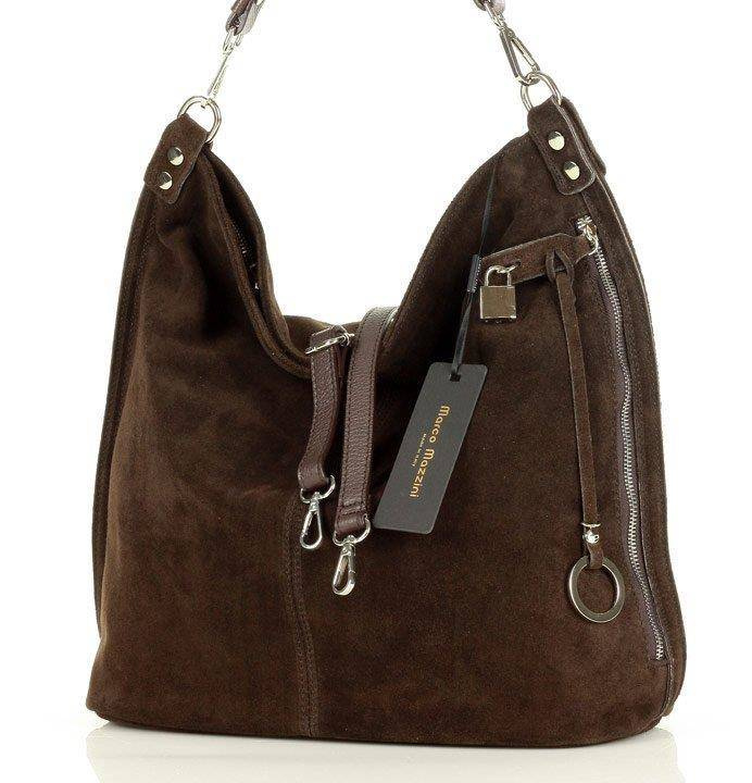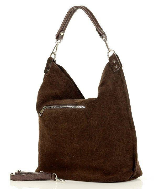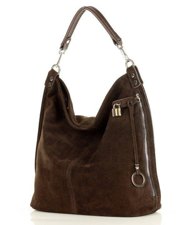 Ponadczasowa torebka worek skórzana MAZZINI - Renella nubuk brąz caffe - min. zamówienie 20 / 50 / 100 szt.