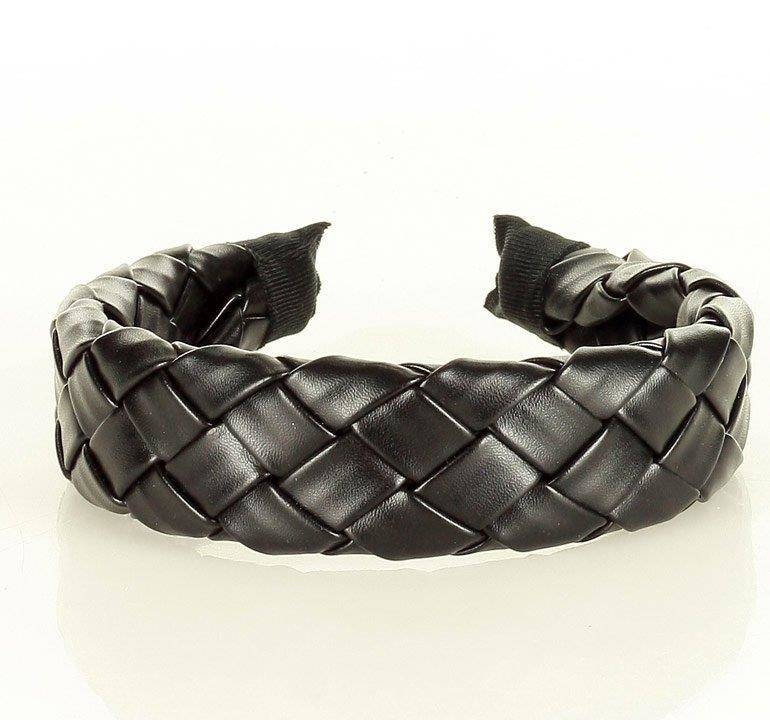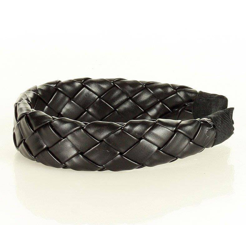 Wyplatana opaska ozdobna na włosy skóra ekologiczna boho czarna MAZZINI - min. zamówienie 20 / 50 / 100 szt.