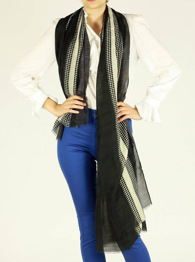 Elegancki szal apaszka damska w paski MAZZINI czarny - min. zamówienie 20 / 50 / 100 szt.