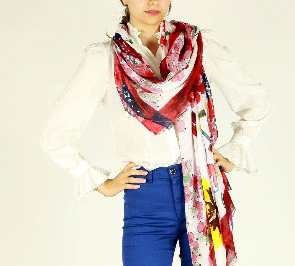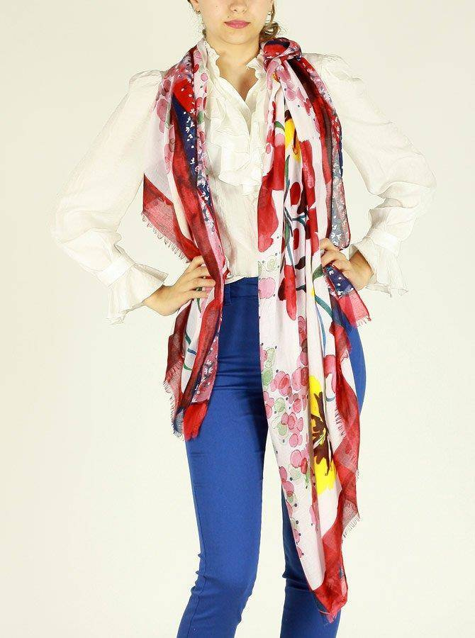 Szal damski apaszka kwiaty miękka bawełna na ramiona i pod szyję MAZZINI czerwona - min. zamówienie 20 / 50 / 100 szt.
