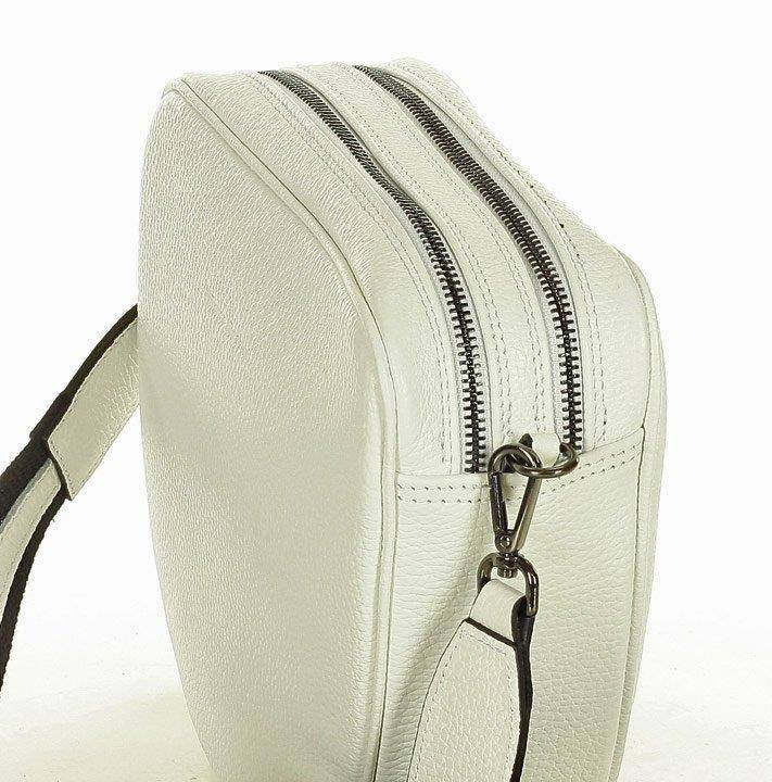 Sportowa listonoszka z dwoma osobnymi komorami zapewni ład i porządek wśród Twoich codziennych drobiazgów. Wykonana z naturalnej skóry o drobnoziarnistej „groszkowej” powierzchni. Ten typ skóry naturalnej jest wyjątkowo wytrzymały na czynniki zewnętrzne. Dostęp do każdej z komór szczelnie kryty suwakiem. W środku znajduje się kieszonka na zamek. Wnętrze torebki zostało starannie wykończone podszewka. Bardzo pojemny model listonoszki. Komfort noszenia dopełnia szeroki długi pasek. Praktyczna i funkcjonalna torebka sprawdzi się na co dzień! Listonoszka skórzana z kolekcji MARCO MAZZINI.