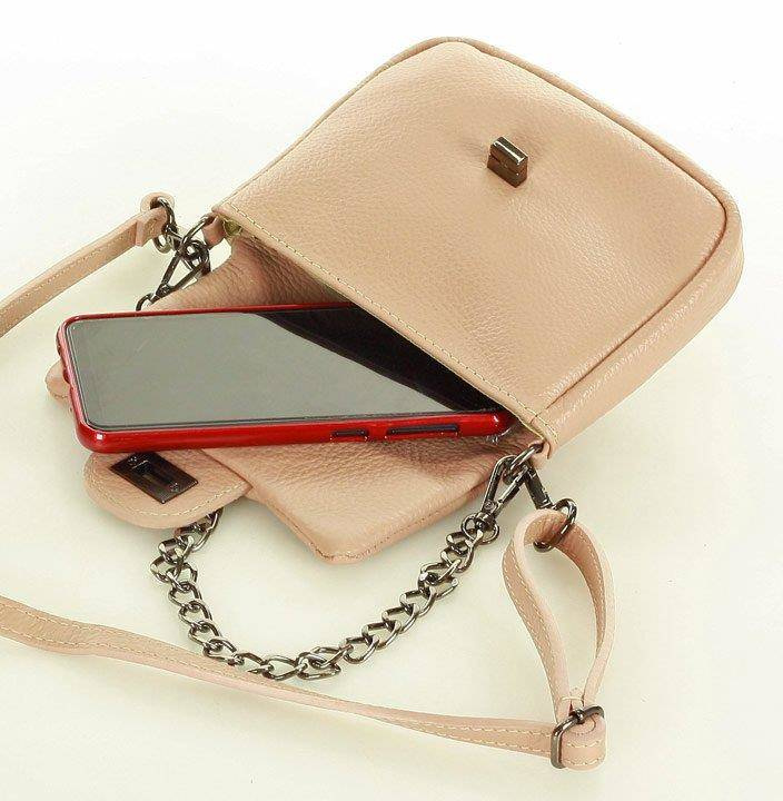 Włoska listonoszka choć jest niewielkich rozmiarów, jest bardzo praktyczną mini torebką. Schowasz do niej najbardziej potrzebne drobiazgi, bez których nie ruszasz się z domu: smartfon, karty płatnicze, bilet na tramwaj, klucze do mieszkania a nawet mały portfel. Torebka zdobiona odpinanym łańcuszkiem, po podpięciu, którego możesz ją nosić w formie eleganckiej wizytowej mini kopertówki. Wykonana z naturalnej skóry, starannie wykończona będzie Ci towarzyszysz przez wiele lat. Jednokomorowe wnętrze zamykana na klapę z klamerką. W środku znajduje się kieszonka na zamek. Komfort noszenia dopełnia regulowany, również odpinany długi pasek. Praktyczna i funkcjonalna torebka sprawdzi się zarówno na co dzień jak i na wielkie wyjścia. Sięgnij po nią kiedy potrzebujesz niewielkiej i lekkiej torebki na najpilniejsze drobiazgi!