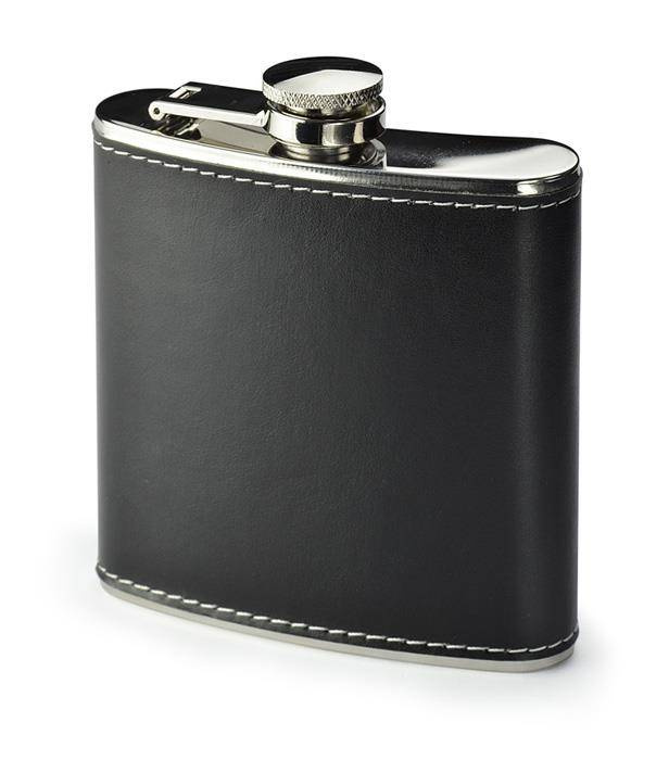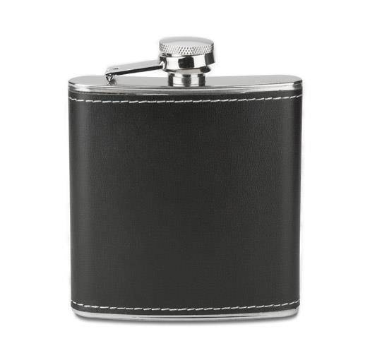 Stylowa piersiówka wykonana ze stali nierdzewnej, wykończona ekoskórą PU o pojemności 6 oz (ok 177ml).