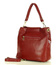Elegancka torebka na ramię w kolorze bordowym wykonana została z dwóch rodzajów skóry naturalnej wysokiej jakości. Połączenie skóry bydlęcej typu Palmellata (na froncie) z mięsistą, miękką skórą naturalną (na klapie i na pozostałej części torebki) dodaje torebce uroku. Skóra typu Palmellata jest sztywniejsza, co pozwala torebce lepiej trzymać fason. Jest to skóra z subtelnym połyskiem uzyskanym dzięki procesom polerowania. Oba rodzaje użytej skóry są niezwykle odporne na działanie czynników zewnętrznych oraz posiadają delikatną fakturę.