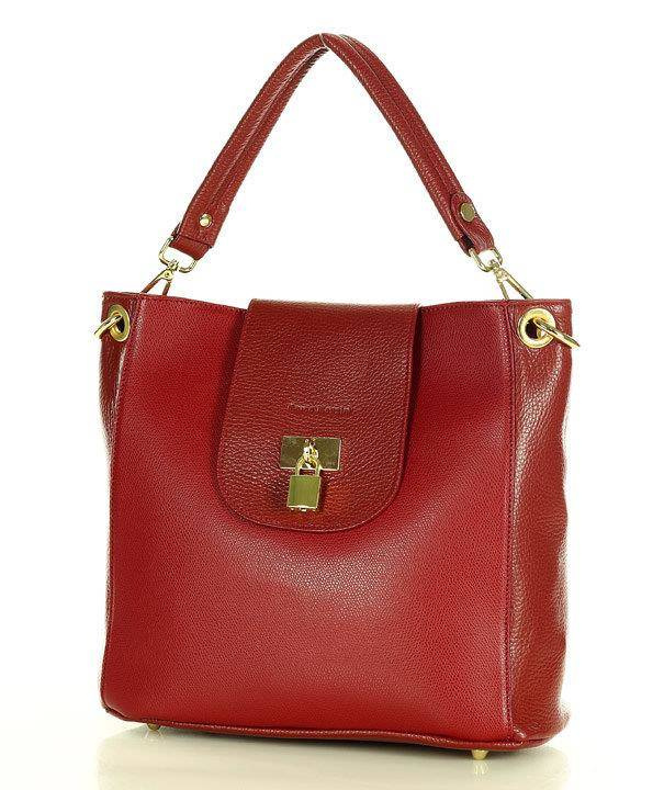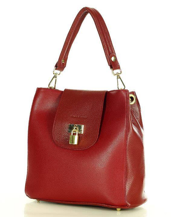 Nietuzinkowa skórzana torebka dedykowana dla kobiet lubiących włoski design i niesztampowe rozwiązania. Ozdobna złota kłódka na klapce dodaje torebce elegancji. Dostęp do wnętrza torby jest dobrze zabezpieczony szeroką klapą oraz zamkiem błyskawicznym. W środku modelu znajduje się duża przegroda na zamek oraz dwie kieszenie w tym jedna kryta suwakiem. Dodatkowa poręczna kieszonka znajduje się z tylu modelu. Torebka zorganizowana na 5+. Dwa wymienne paski: krótsza rączka oraz regulowany długi pasek zapewniają komfort noszenia, w każdej sytuacji. Spód zabezpieczony przed otarciem i zabrudzeniem metalowymi stopkami.