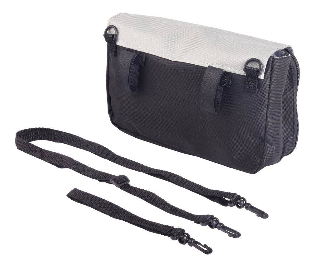 Torba rowerowa na kierownicę BIKE EASY: z rzepami do mocowania na kierownicy, 1 duża główna komora, 1 duża kieszeń na suwak z otwartą kieszenią oraz dodatkową kieszonką zamykaną na zamek, 1 otwarta kieszeń z przodu, zamknięcie z zatrzaskiem, odpinana smycz, regulowany i zdejmowany pasek na ramię, wygodna osłona przeciwdeszczowa