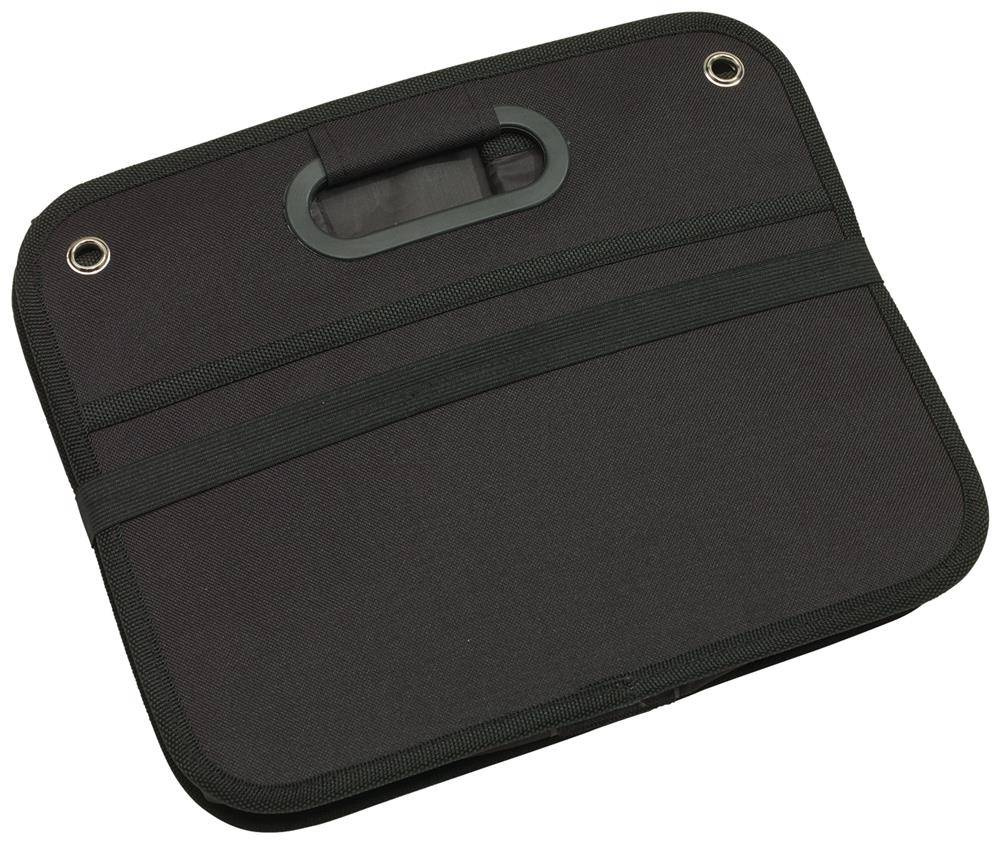 Organizer do bagażnika CAR-GADGET, składany, 2 przegródki z matami na spód, 1 siatkowa kieszonka, 2 uchwyty do przenoszenia, z rzepem od spodu dla lepszej przyczepności do podłoża bagażnika i 4 metalowymi oczkami do dodatkowego przymocowania – dzięki elastycznemu paskowi można złożyć, aby zaoszczędzić miejsce, gdy nie jest używany.