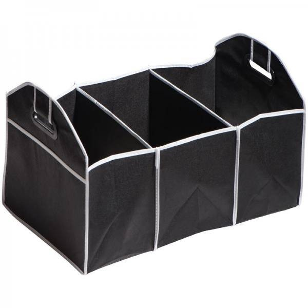 Praktyczna torba do bagażnika z trzema przegródkami wykonana z polestru i non-woven.