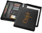 Portfolio zapinane na zamek z uchwytem, kółkami segregatora, zapinaną na zamek kieszonką i kieszeniami na dokumenty.