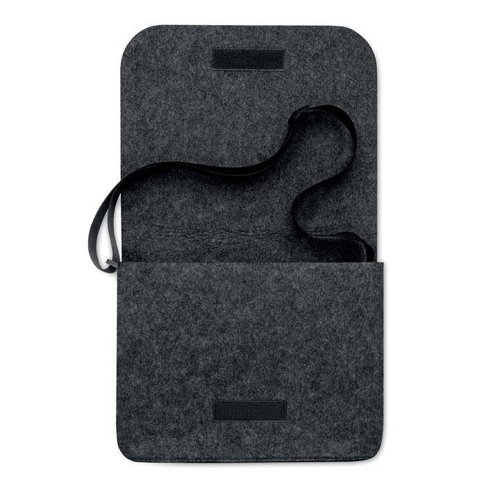 Filcowa torba listonoszka lub torba na laptopa RPET z zapięciem na rzep.