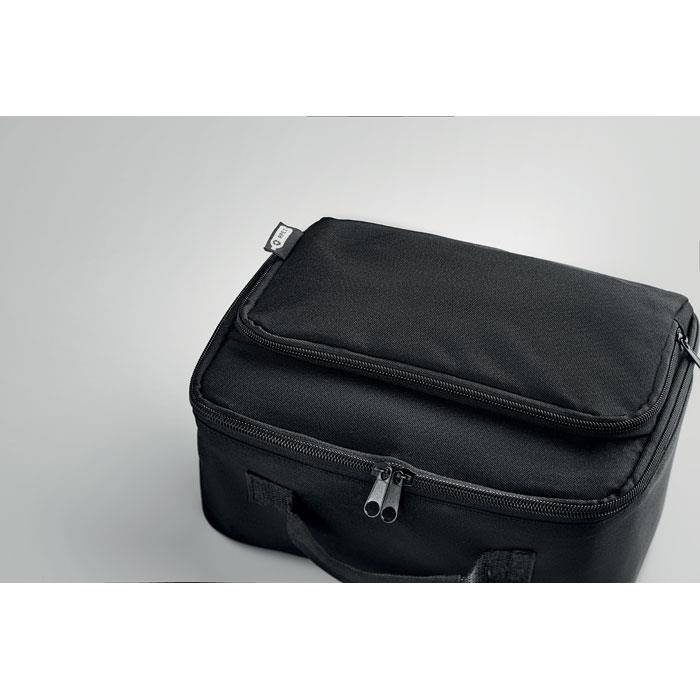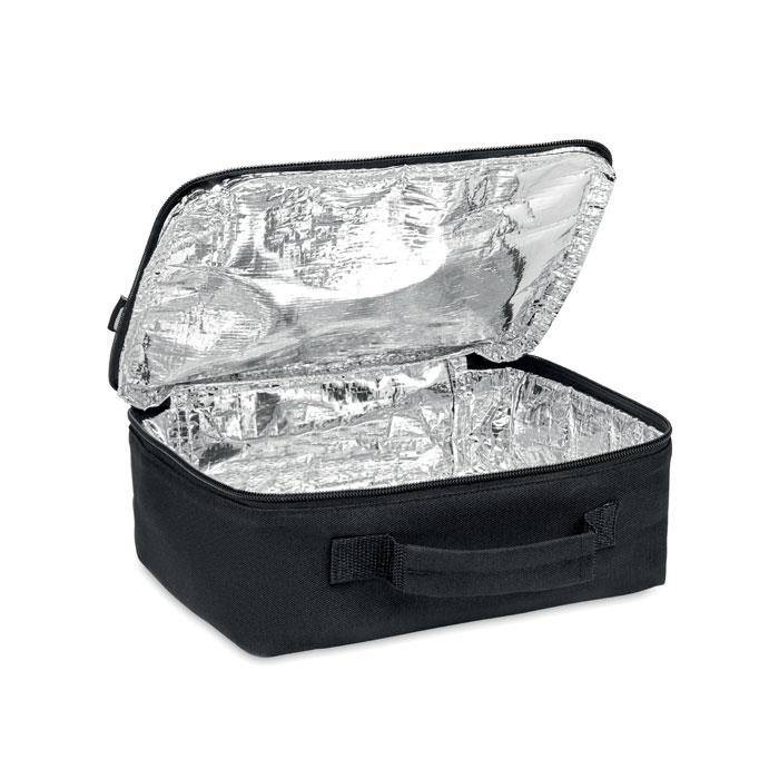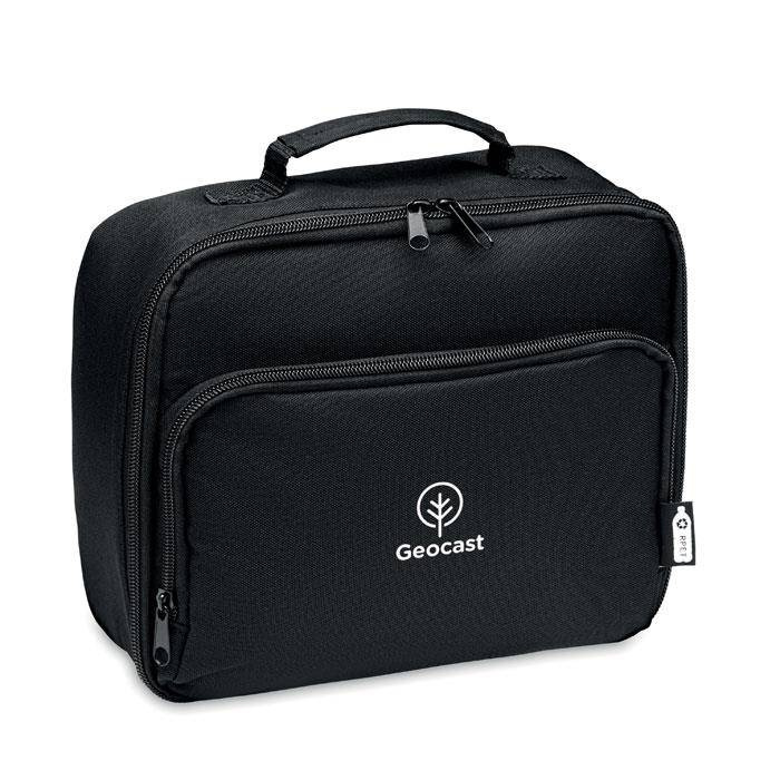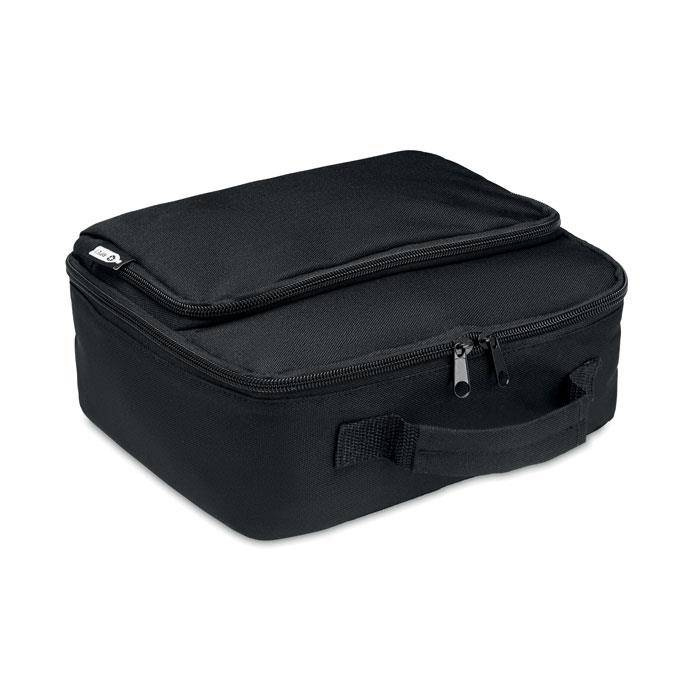 Izolowana torba na lunch z 600D RPET z uchwytem do przenoszenia.