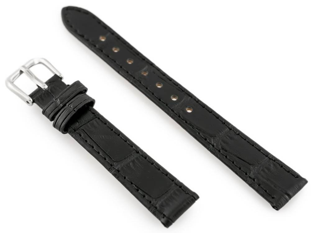 Pasek ze skóry naturalnej w kolorze czarnym z czarnymi przeszyciami. Klamerka metalowa w kolorze srebrnym.