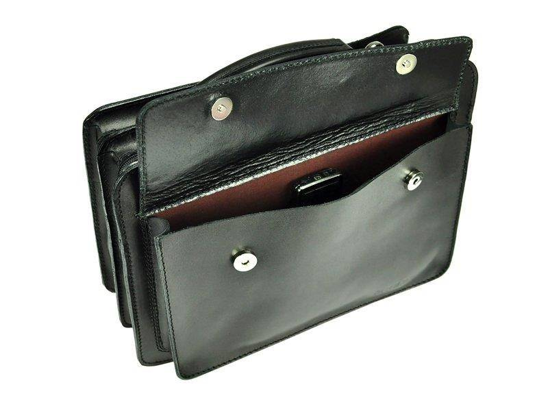 - Z przodu teczki znajduje się szeroka kieszeń zamykana na magnesy