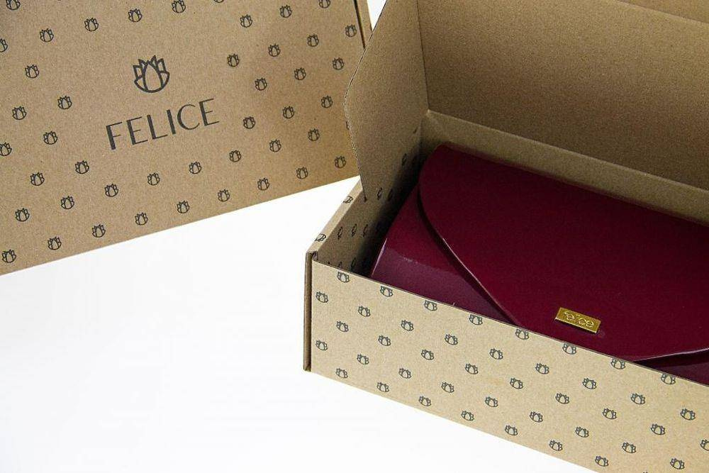 Każda kopertówka zapakowana jest w dodatkowe ozdobne pudełko, sygnowane logo Felice.