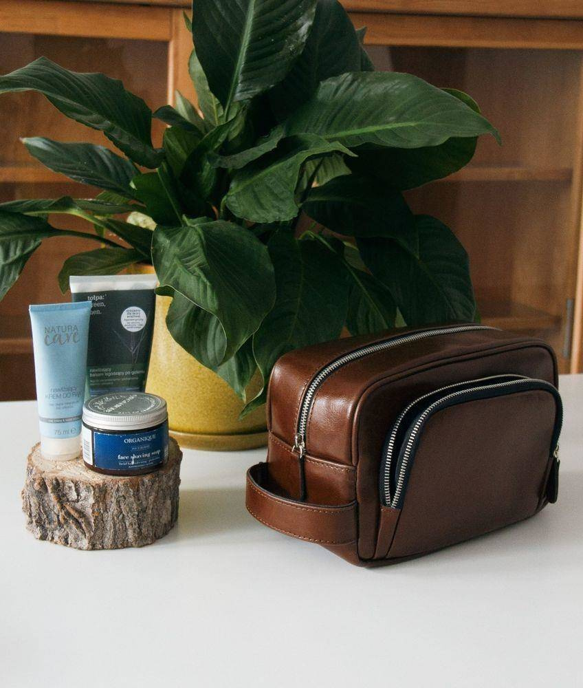 Wykonana ze skóry naturalnej kosmetyczka męska