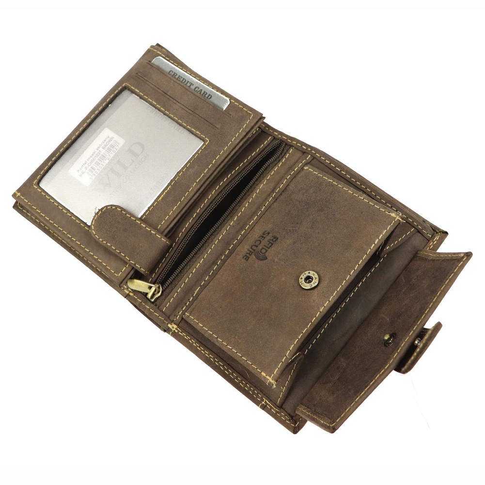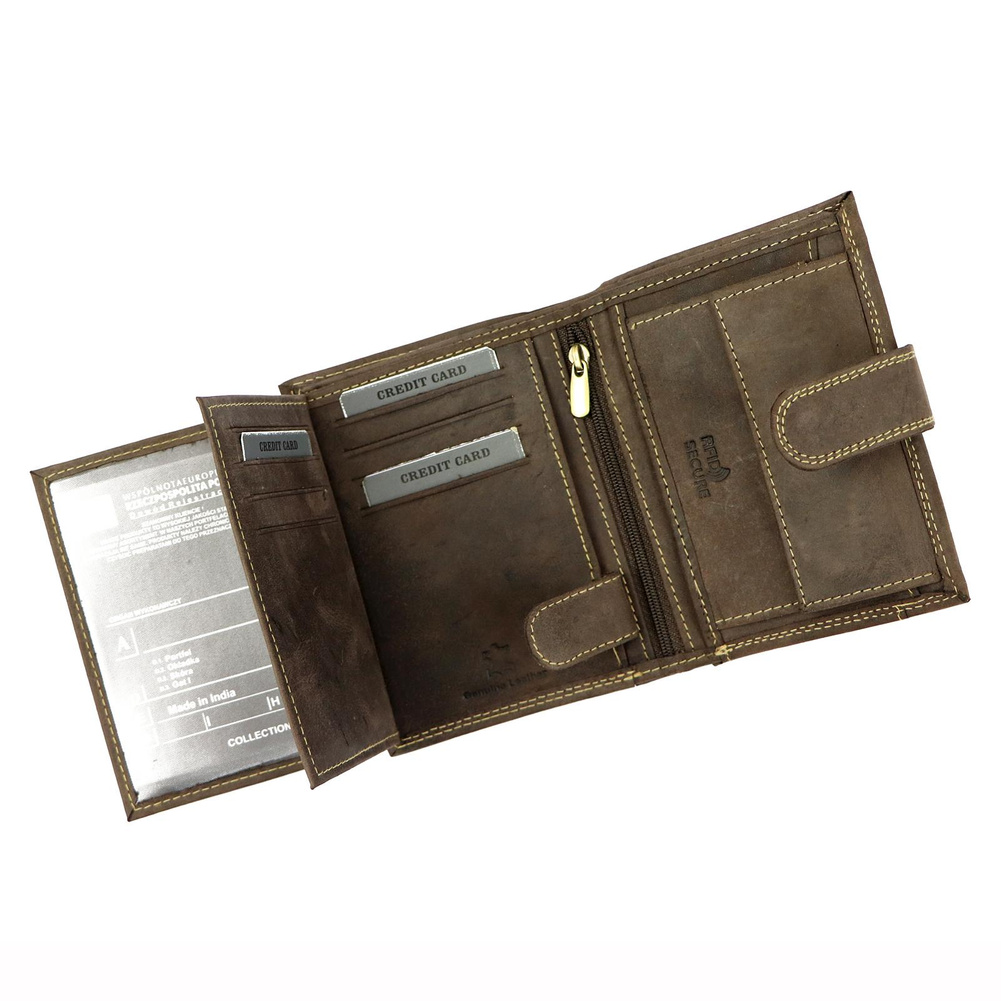 - Zabezpieczony systemem RFID PROTECT | Technologia ta, chroni portfel przed złodziejami używającymi czytniku do kart. Twoje środki, do których dostęp masz za pomocą kart - są bezpieczne!