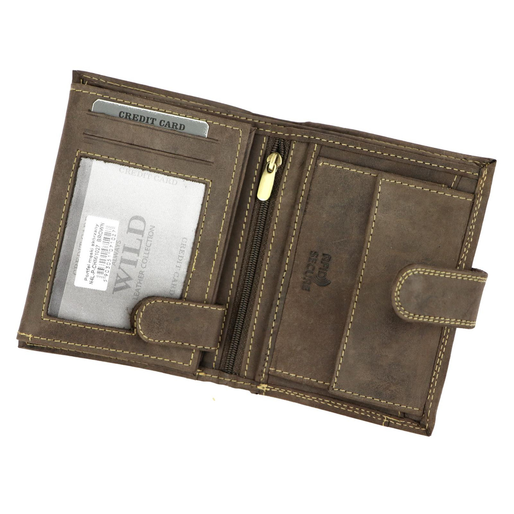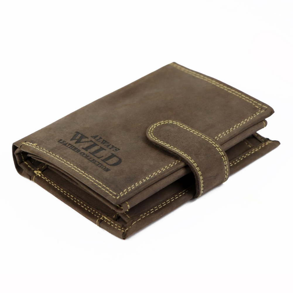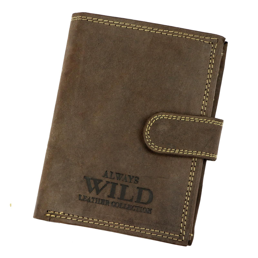 Pionowy, zapinany portfel męski z zewnętrzną kieszonką na kartę — Always Wild