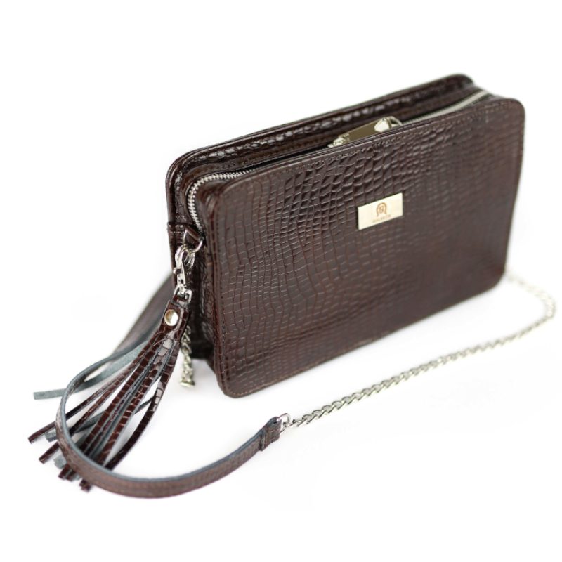 Stworzyliśmy tam 2 kieszonki. Jedna skórzana z myślą o Twoim smartfonie, by miał swoje wyjątkowe miejsce. Kolejna uszyta przez całą wewnętrzną długość torebki zasuwana na zamek.
