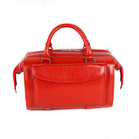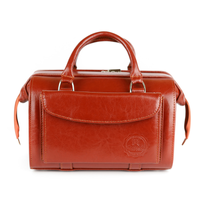 Na przodzie stworzyliśmy elegancką kieszonkę zapinaną na klapkę z jednym magnesem. Kuferek ma dwie skórzane rączki.