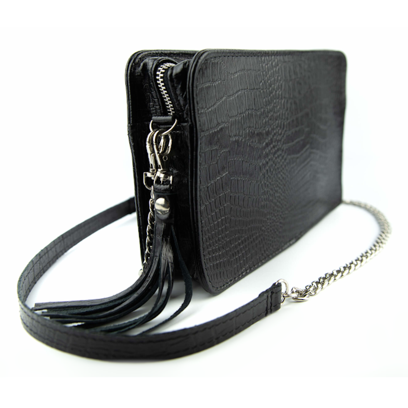Stworzyliśmy tam 2 kieszonki. Jedna skórzana z myślą o Twoim smartfonie, by miał swoje wyjątkowe miejsce. Kolejna uszyta przez całą wewnętrzną długość torebki zasuwana na zamek.