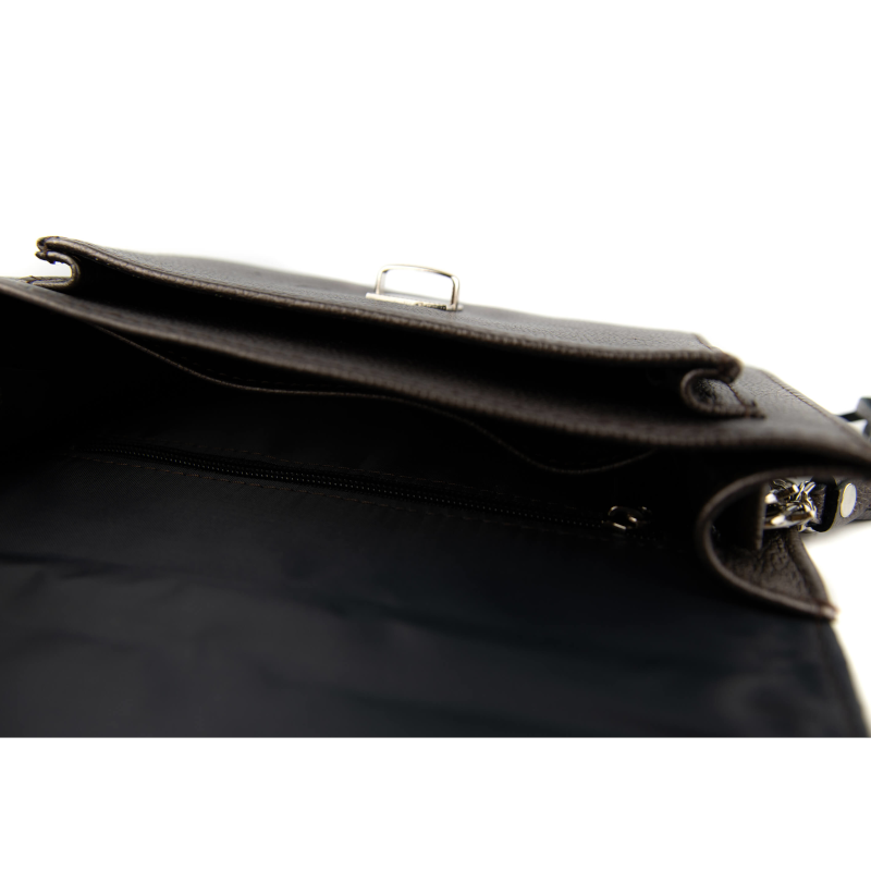 Oczywiście dodaliśmy 2 praktyczne kieszonki. Jedna skórzana, druga uszyta przez cała wewnętrzną długość torebki zasuwana na zamek.