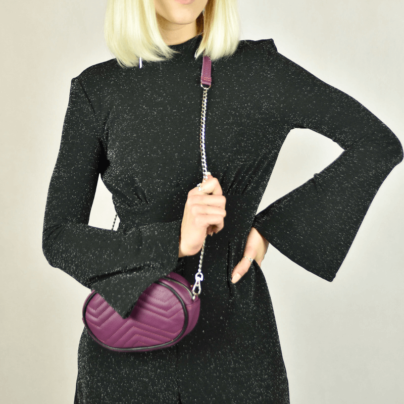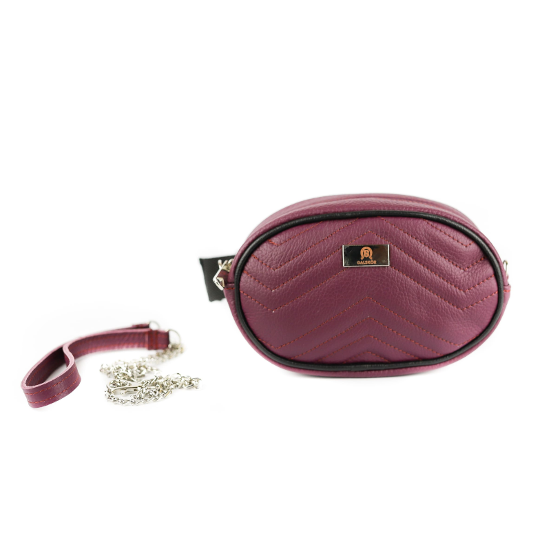 Po bokach do torebki umocowany jest odpinany na karabińczyki łańcuszek. Naszą nerko-torebkę zrobimy dla Ciebie z kilkunastu kolorów i wzorów skór bydlęcych.