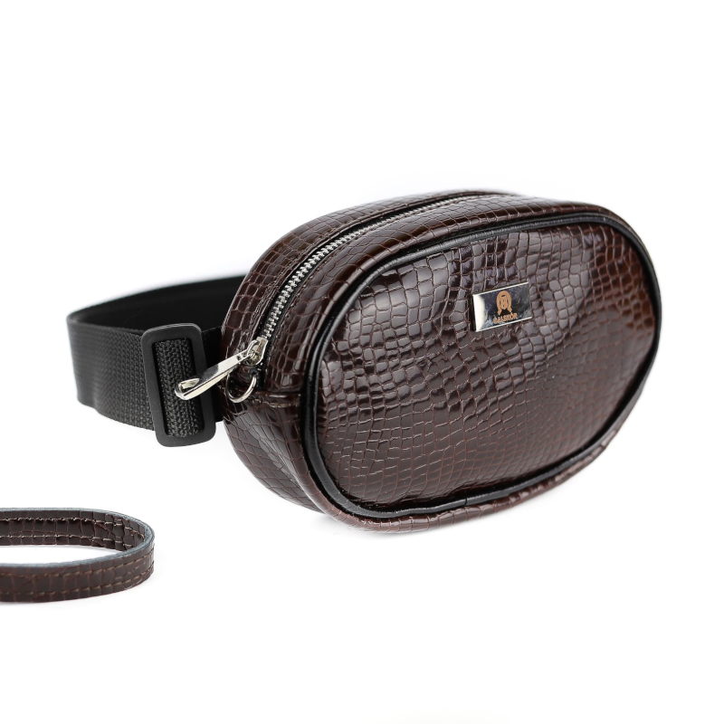 Po bokach do torebki umocowany jest odpinany na karabińczyki łańcuszek. Naszą nerko-torebkę zrobimy dla Ciebie z kilkunastu kolorów i wzorów skór bydlęcych.