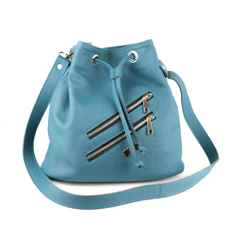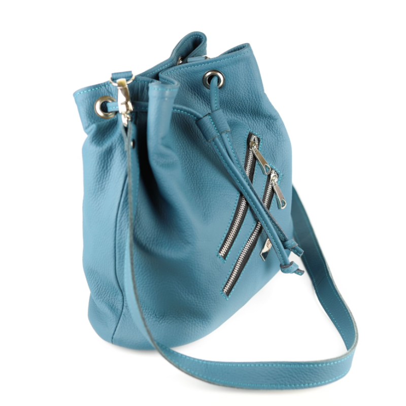 Z przodu naszyliśmy 2 ozdobne kieszonki zasuwane na niklowy suwak. Wewnątrz znajduje się skórzana kieszonka, z przeznaczeniem na Twojego smart-fona, by miał swoje wyjątkowe miejsce w torebce.
