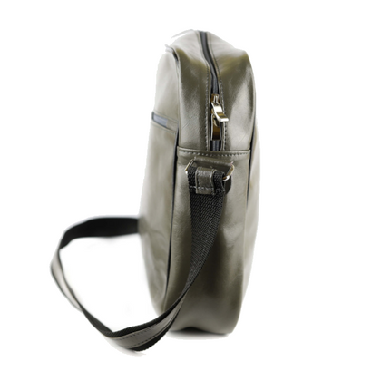 W środku torba składa się z jednej komory. Z jednej strony naszyliśmy małą kieszonke na suwak, a zaraz obok skórzaną na 2 długopisy.