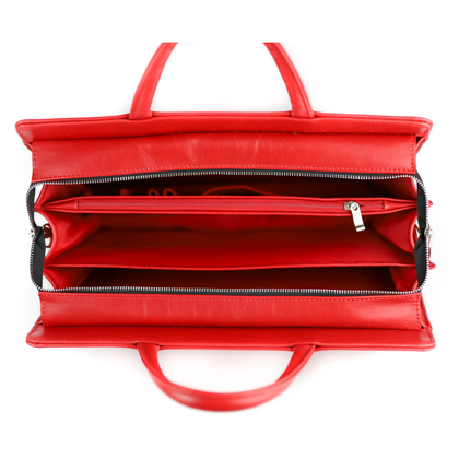 Jest jedną z najbardziej pakownych teczek. Wewnątrz znajdują się trzy komory. Druga i trzecia oddzielone są od siebie za pomocą przegrody zasuwanej na suwak.