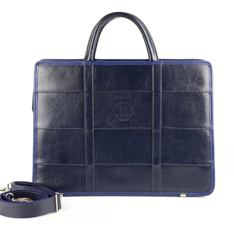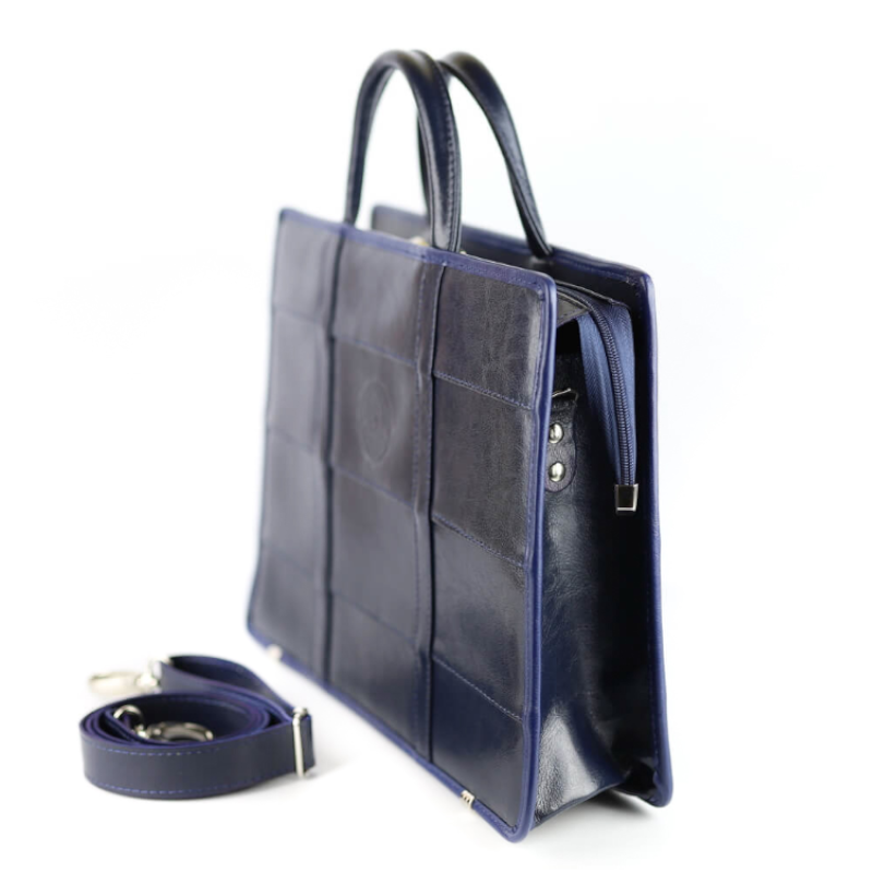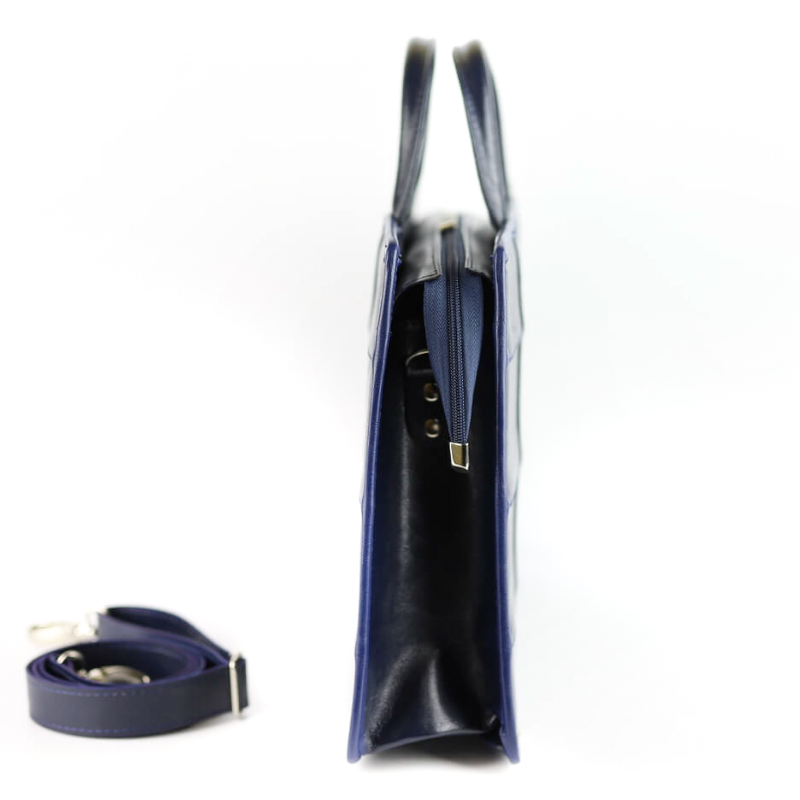 Po bokach teczka ma doczepione skórzane uchwyty, do których możesz przyczepić pasek, będący w zestawie.