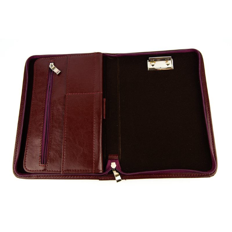 Wewnątrz clip, do którego przymocujesz recepty, po przeciwnej stronie 2 skórzane kieszonki, jedna długa kieszeń zasuwana na suwak oraz duża przegroda.