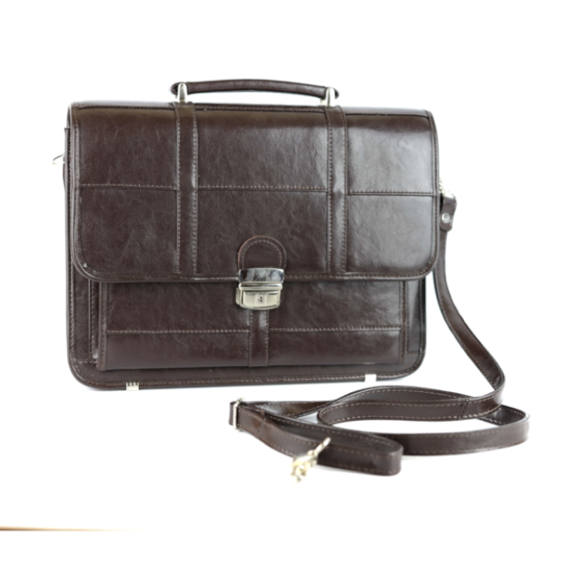 Teczkę możesz nosić w ręku lub na ramieniu za pomocą szerokiego, skórzanego paska.