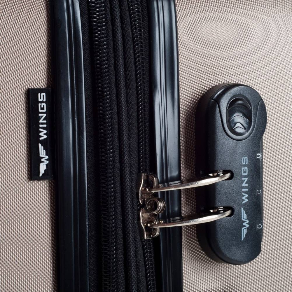 Luksusowa walizka, stworzona z myślą dla najbardziej wymagających klientów. Nowoczesny, lekki model wykonany z bardzo wytrzymałego i odpornego na zarysowanie tworzywa ABS Plus, z dwupoziomową teleskopową rączką. Zewnętrzne, przyjemne w dotyku gumowe uchwyty oraz zamek szyfrowy uniemożliwiający dostanie się do wnętrza osobom niepożądanym. Trwały, duraluminiowy stelaż wbudowany w walizkę. Wyposażony w cztery obrotowe kauczukowe kółka, które zapewniają stabilność oraz lekkość prowadzenia w dowolnym kierunku. Wnętrze w ciemnym sygnowanym kolorze dzielone zamkiem błyskawicznym na dwie funkcjonalne komory.