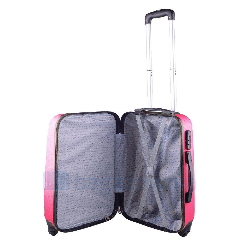 Luksusowa walizka, stworzona z myślą dla najbardziej wymagających klientów. Nowoczesny, lekki model wykonany z bardzo wytrzymałego i odpornego na zarysowanie tworzywa ABS Plus, z dwupoziomową teleskopową rączką. Zewnętrzne, przyjemne w dotyku gumowe uchwyty oraz zamek szyfrowy uniemożliwiający dostanie się do wnętrza osobom niepożądanym. Trwały, duraluminiowy stelaż wbudowany w walizkę. Wyposażony w cztery obrotowe kauczukowe kółka, które zapewniają stabilność oraz lekkość prowadzenia w dowolnym kierunku. Wnętrze w ciemnym sygnowanym kolorze dzielone zamkiem błyskawicznym na dwie funkcjonalne komory.