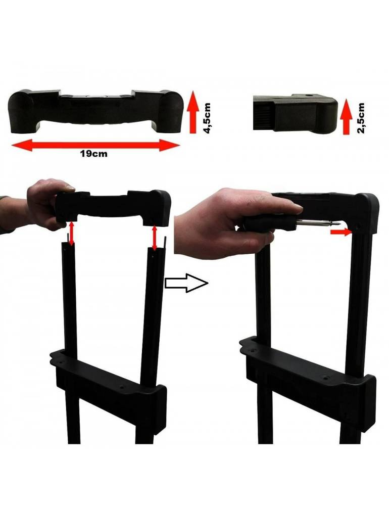 - Aby zamontować rączką należy przykręcić dwie śrubki do stelaża Twojej walizki.
