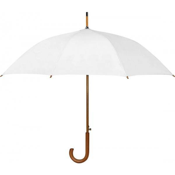 Automatyczny, wiatroodporny parasol z wykonany z włókna szklanego z zakrzywioną drewnianą rączką.
