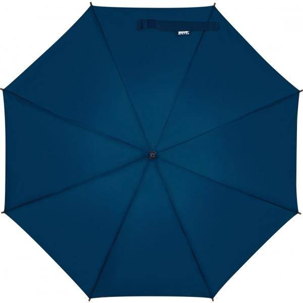 Automatyczny, wiatroodporny parasol z wykonany z włókna szklanego z zakrzywioną drewnianą rączką.