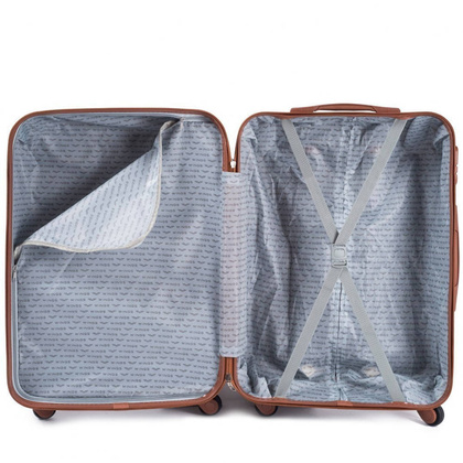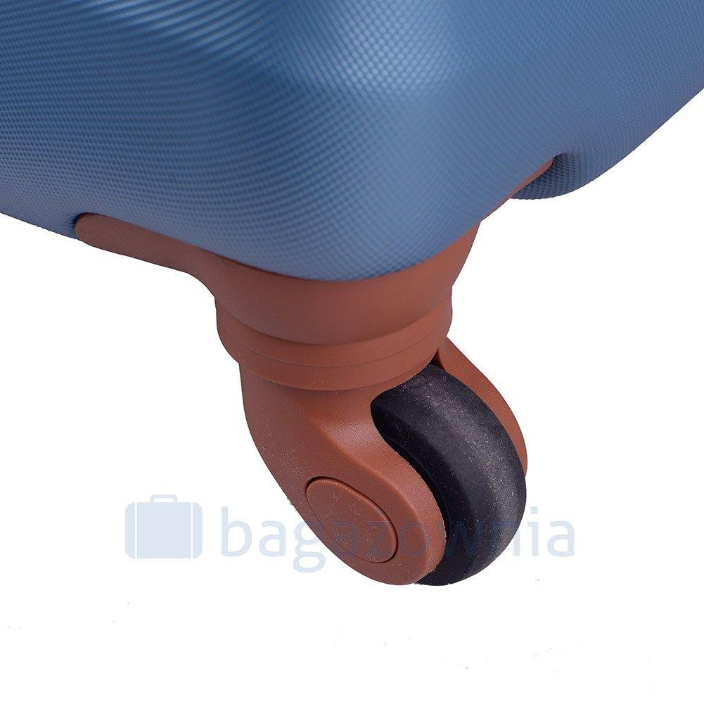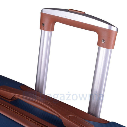 Nowoczesny, lekki model wykonany z bardzo wytrzymałego i odpornego na zarysowanie tworzywa ABS Plus, z dwupoziomową teleskopową rączką. Zewnętrzne, przyjemne w dotyku gumowe uchwyty oraz zamek szyfrowy uniemożliwiający dostanie się do wnętrza osobom niepożądanym. Trwały, duraluminiowy stelaż wbudowany w walizkę. Wyposażony w cztery obrotowe kauczukowe kółka, które zapewniają stabilność oraz lekkość prowadzenia w dowolnym kierunku. Wnętrze w ciemnym sygnowanym kolorze dzielone zamkiem błyskawicznym na dwie funkcjonalne komory.