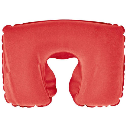 Welurowa, dmuchana poduszka podróżna o ergonomicznym kształcie.