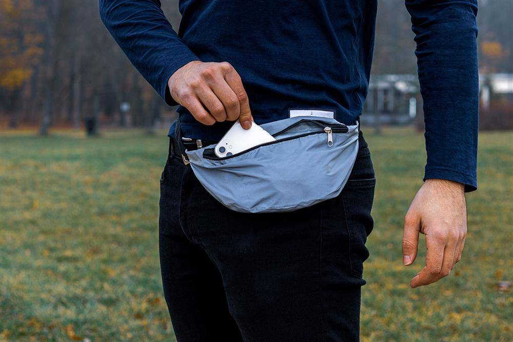 Odblaskowa saszetka z poliestru z płynnie regulowanym paskiem.