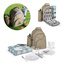 Przednia kieszeń, wyłożona 210D i wyściełana, ma wyjmowany uchwyt na przybory kuchenne, który zawiera 12 sztućców ze stali nierdzewnej (4 widelce, 4 noże i 4 łyżki), 4 talerze, 4 kubki PS, 4 bawełniane serwetki, 1 solniczka, 1 pieprzniczka, 1 deska wykonana z PP i 1 korkociąg.