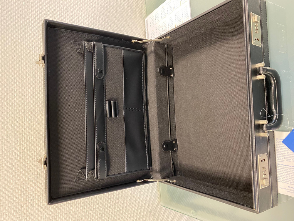 Dodatkowo teczka posiada wygodny pasek na ramię oraz zamek na klucz.